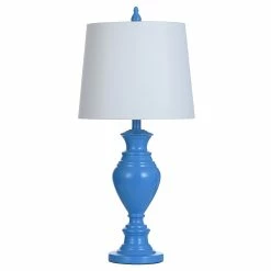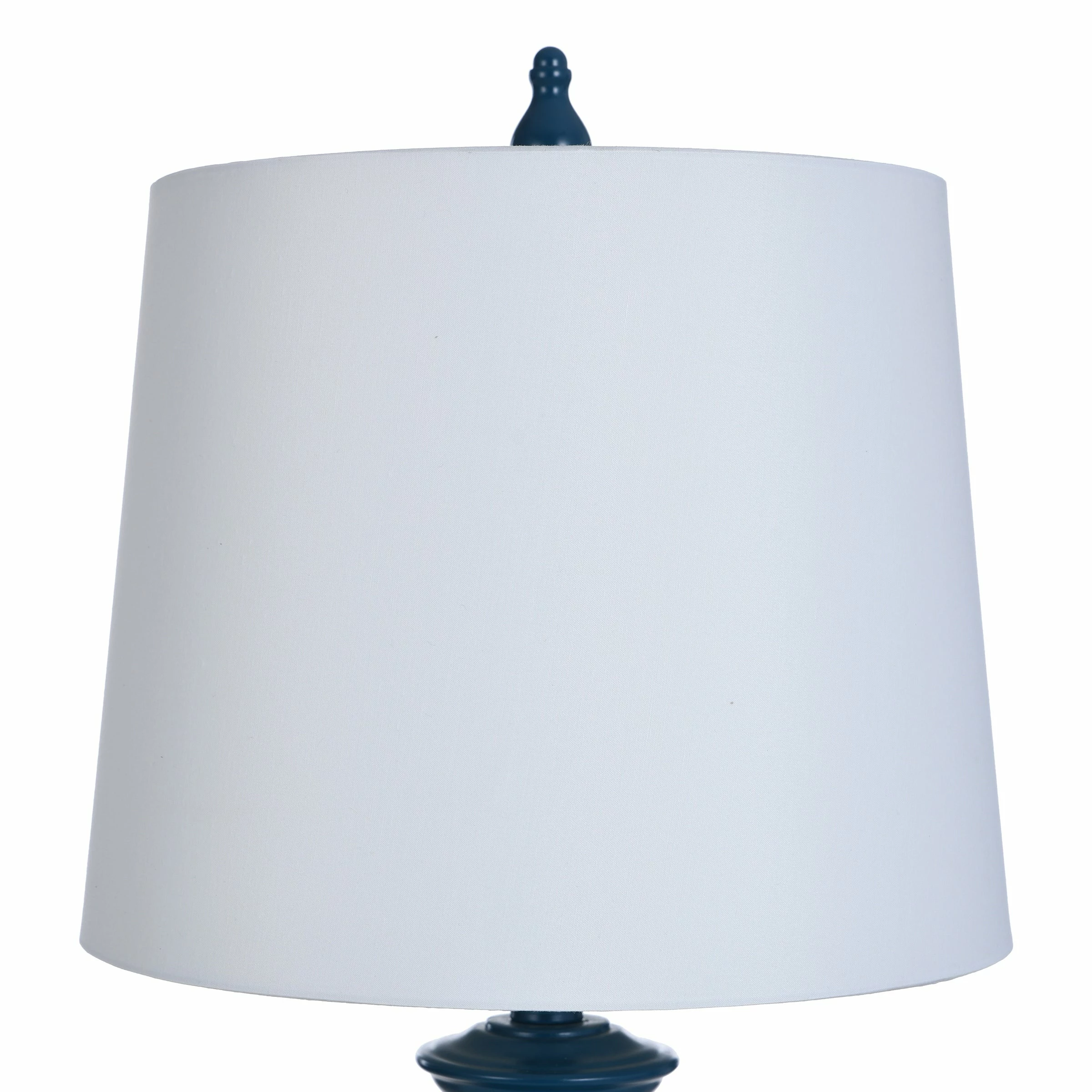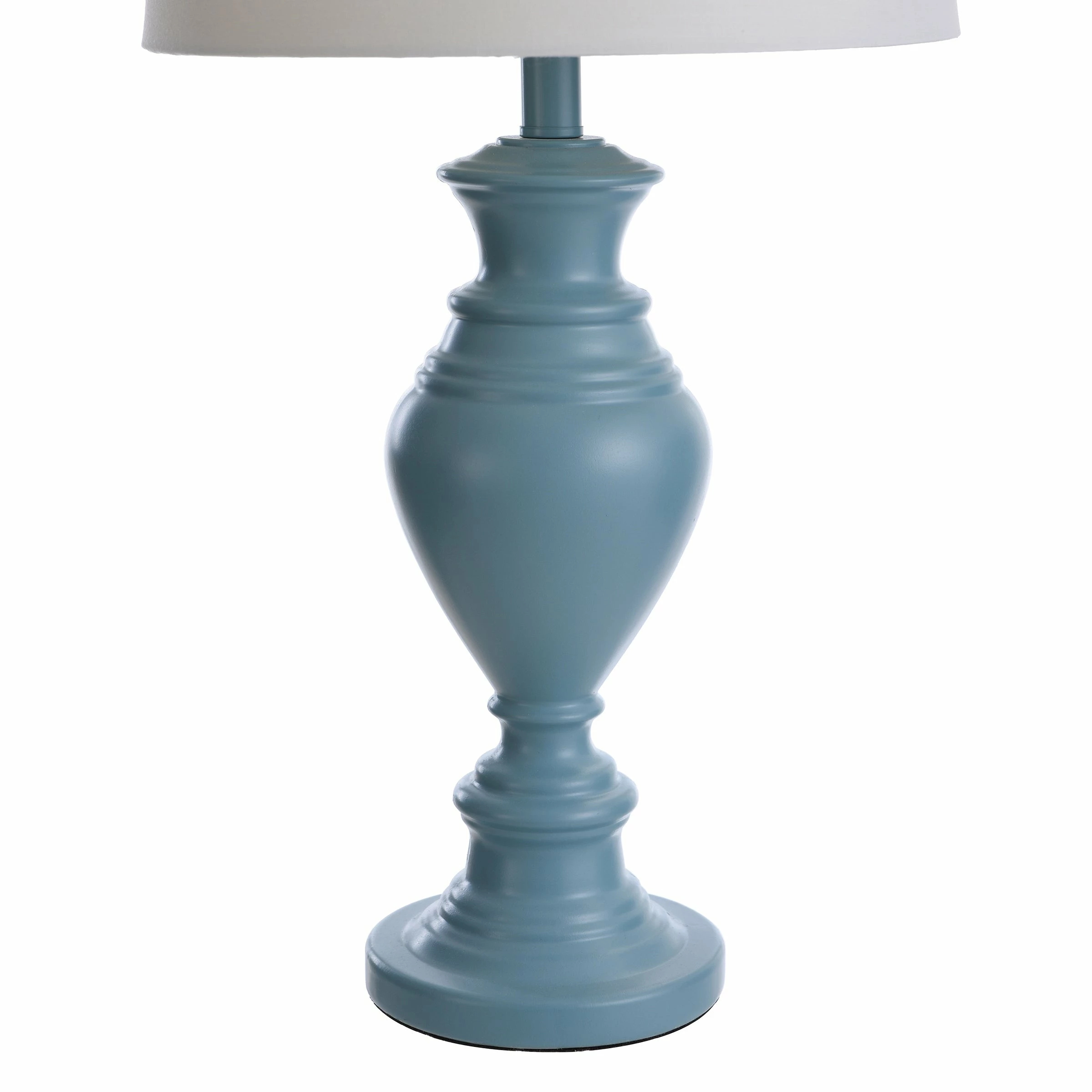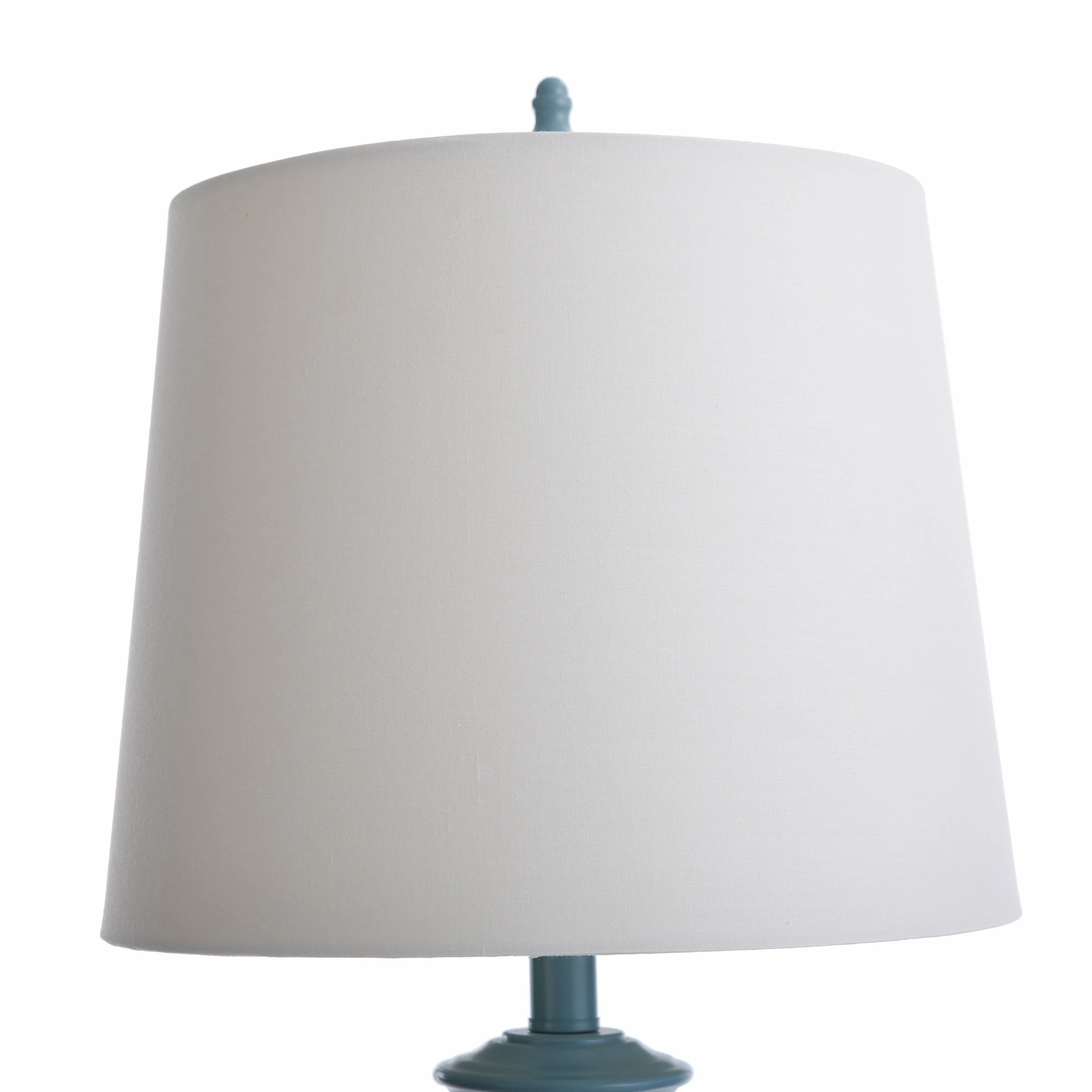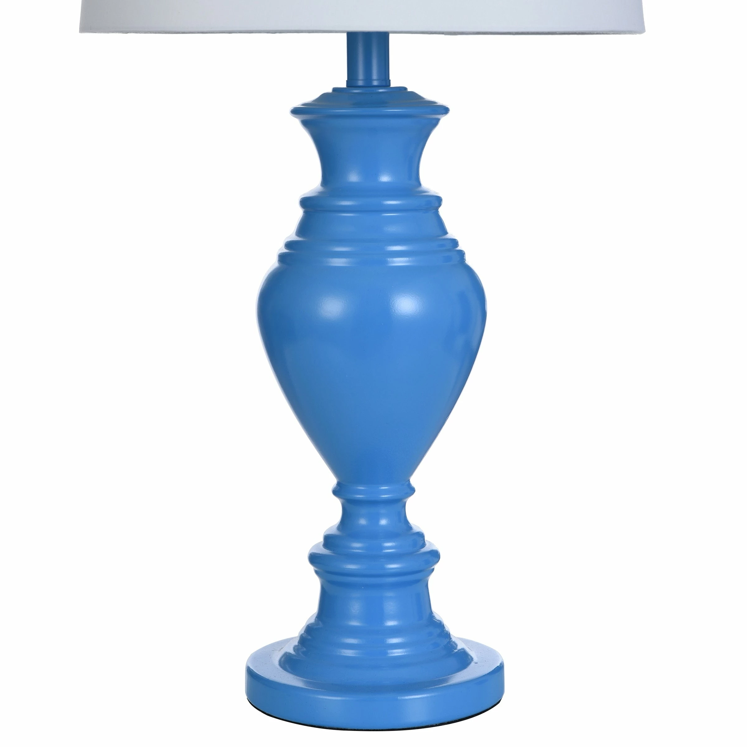 This Table Lamp comes in a plastic frame with a white hardback fabric shade; Requires one (1) 100-watt Incandescent E26 base bulb (not included).