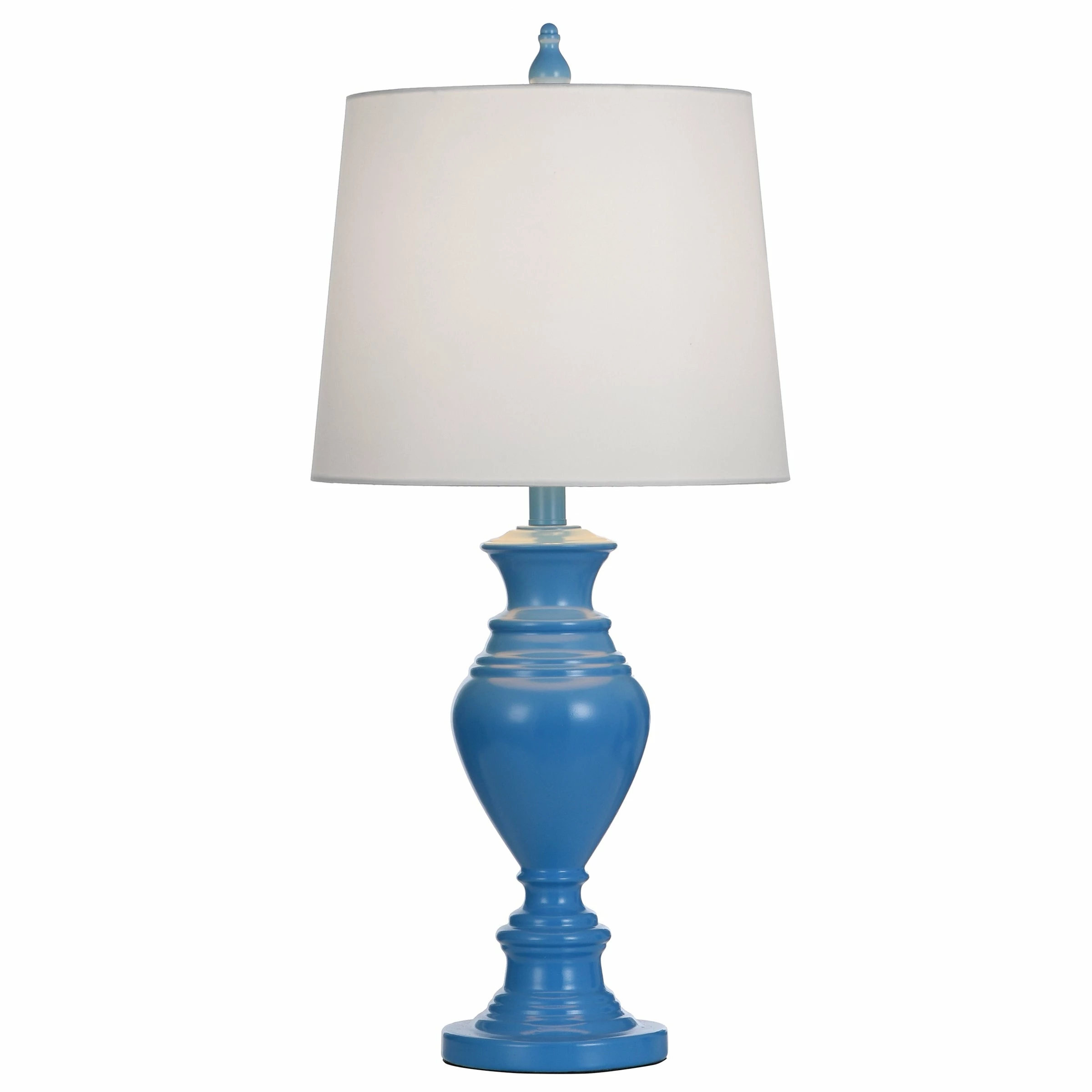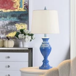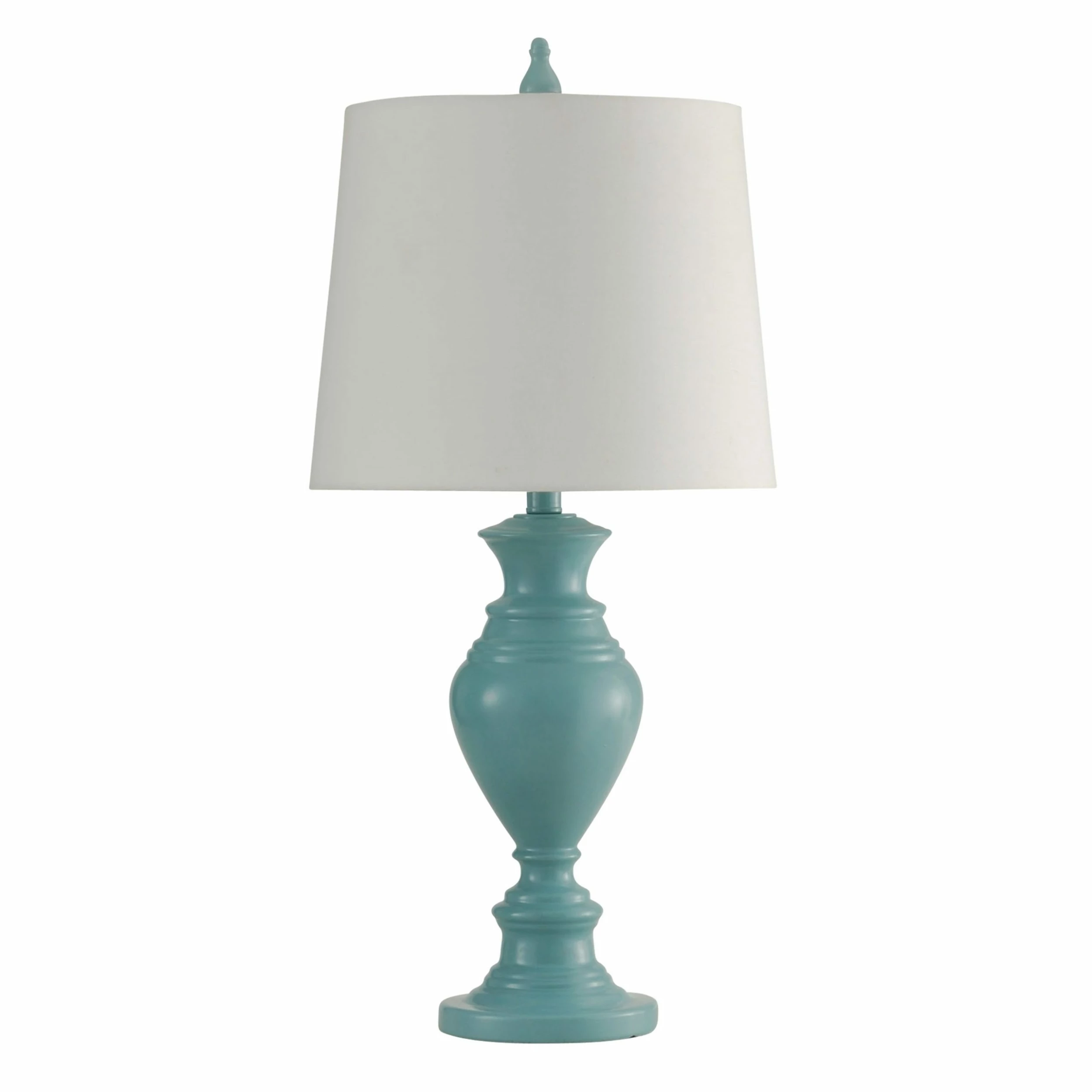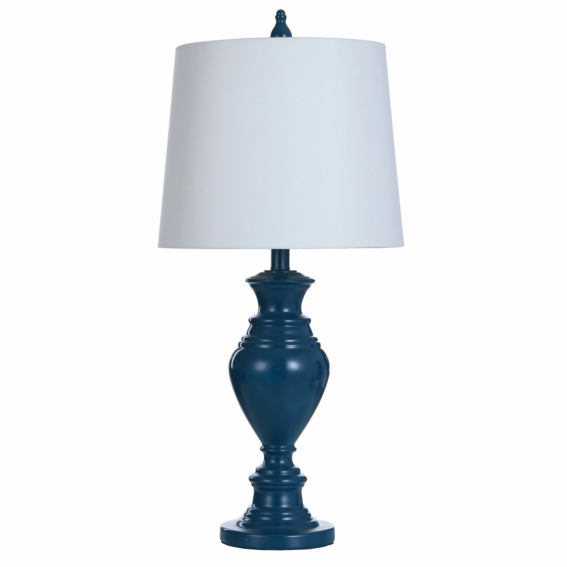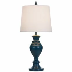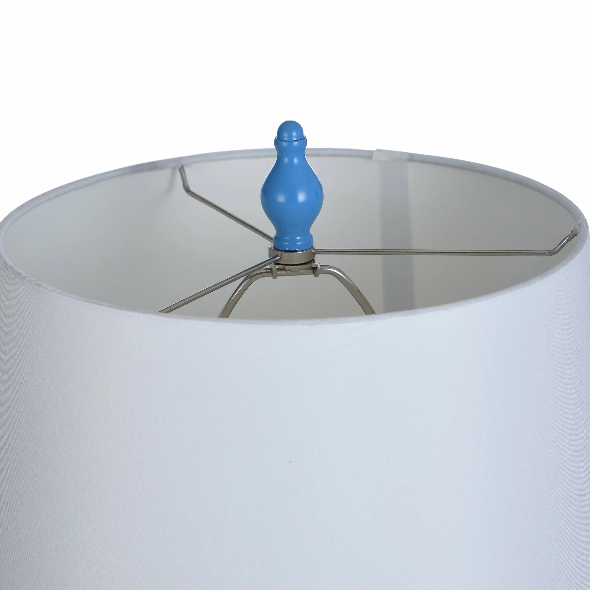 This Table Lamp comes in a plastic frame with a white hardback fabric shade; Requires one (1) 100-watt Incandescent E26 base bulb (not included).